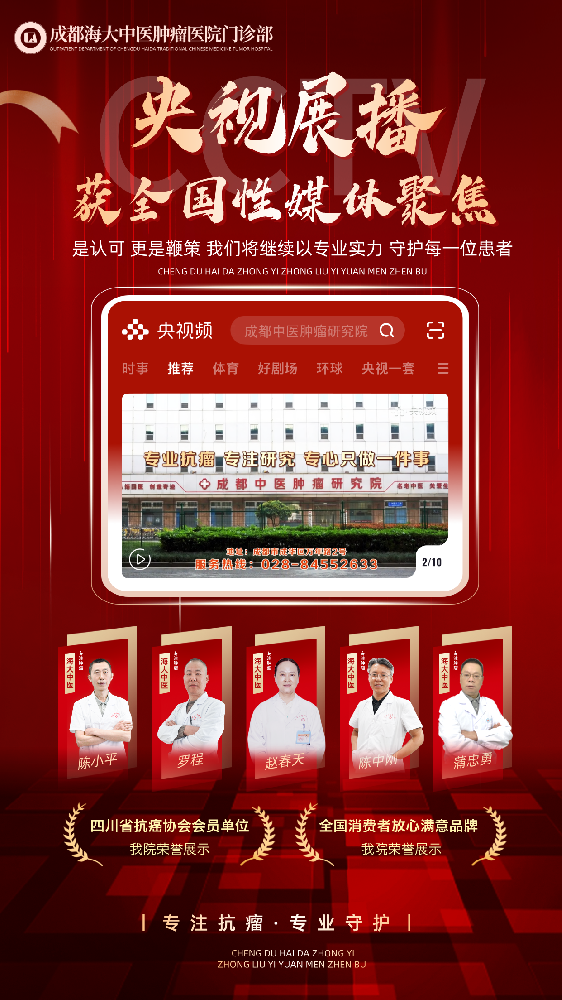成都海大中医肿瘤医院门诊部迎来重磅喜讯 —— 凭借深厚的专业积淀与抗瘤成效,我院成功登陆央视展播平台……[详情]